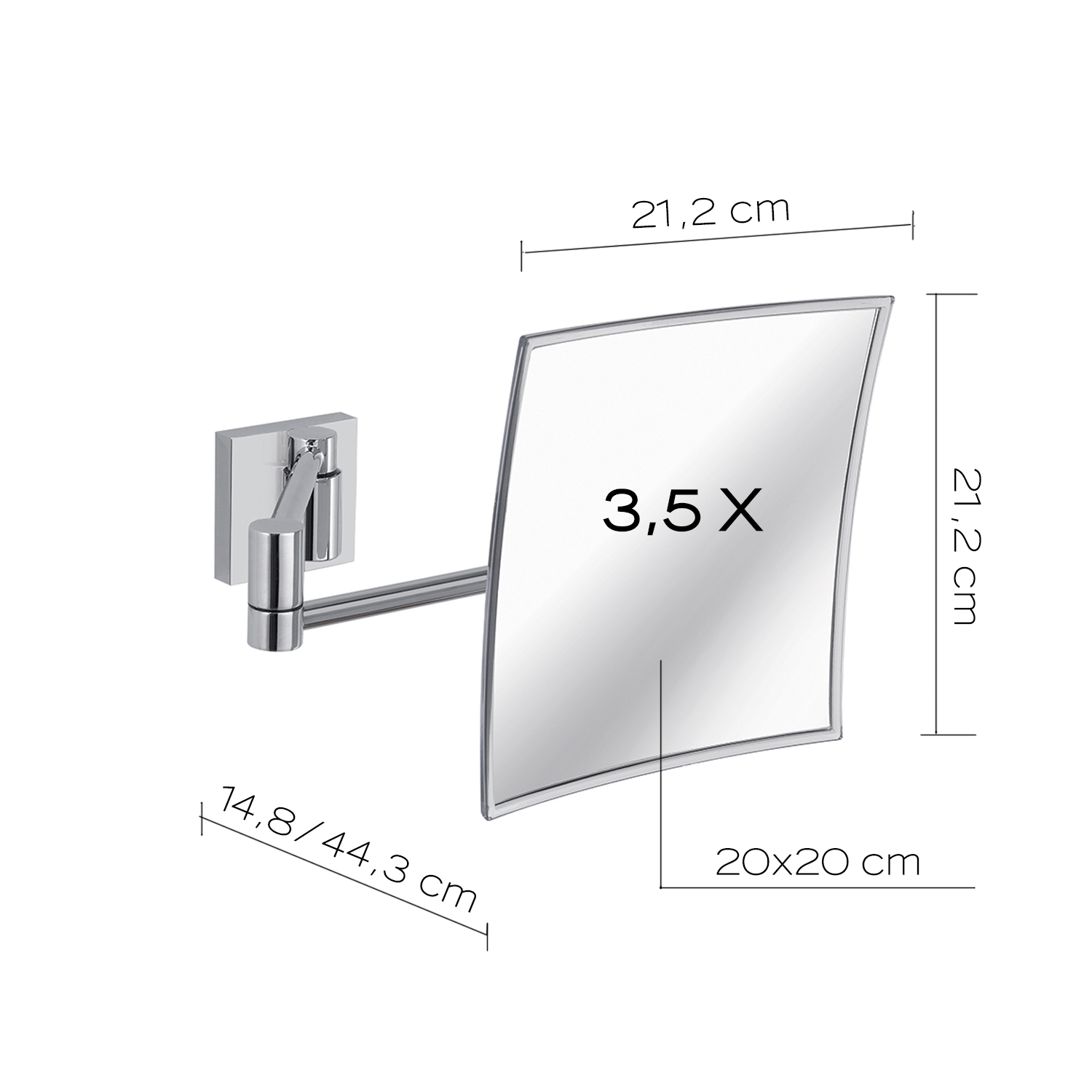 Pecchio ingranditore 3,5x da parete con vetro di sicurezza e cornice extraresistente. supporto estensibile