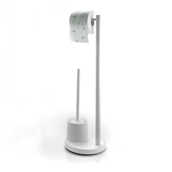Piantana con portarotolo e scopino wc. scopino con ciuffo in setole bianco