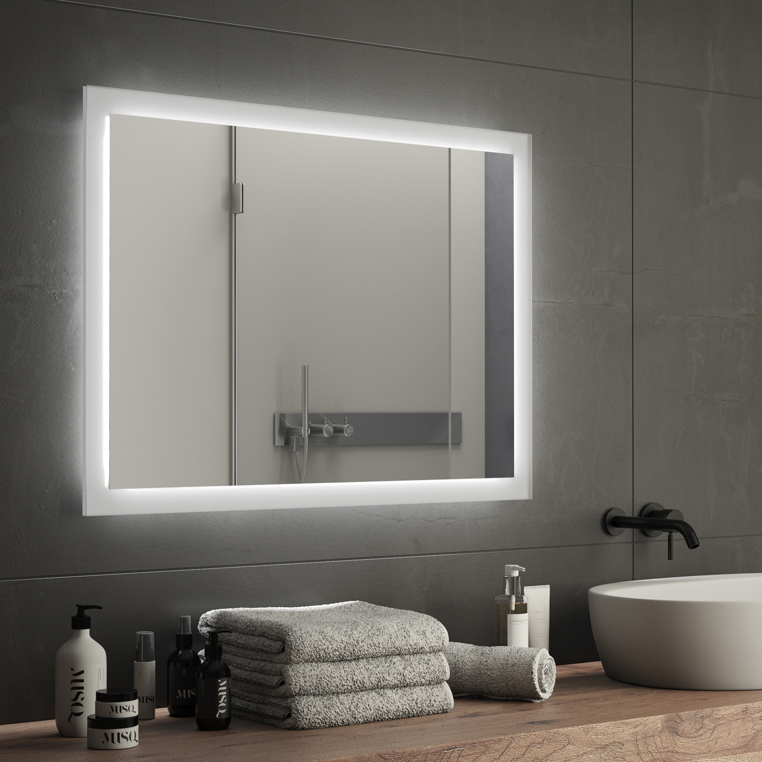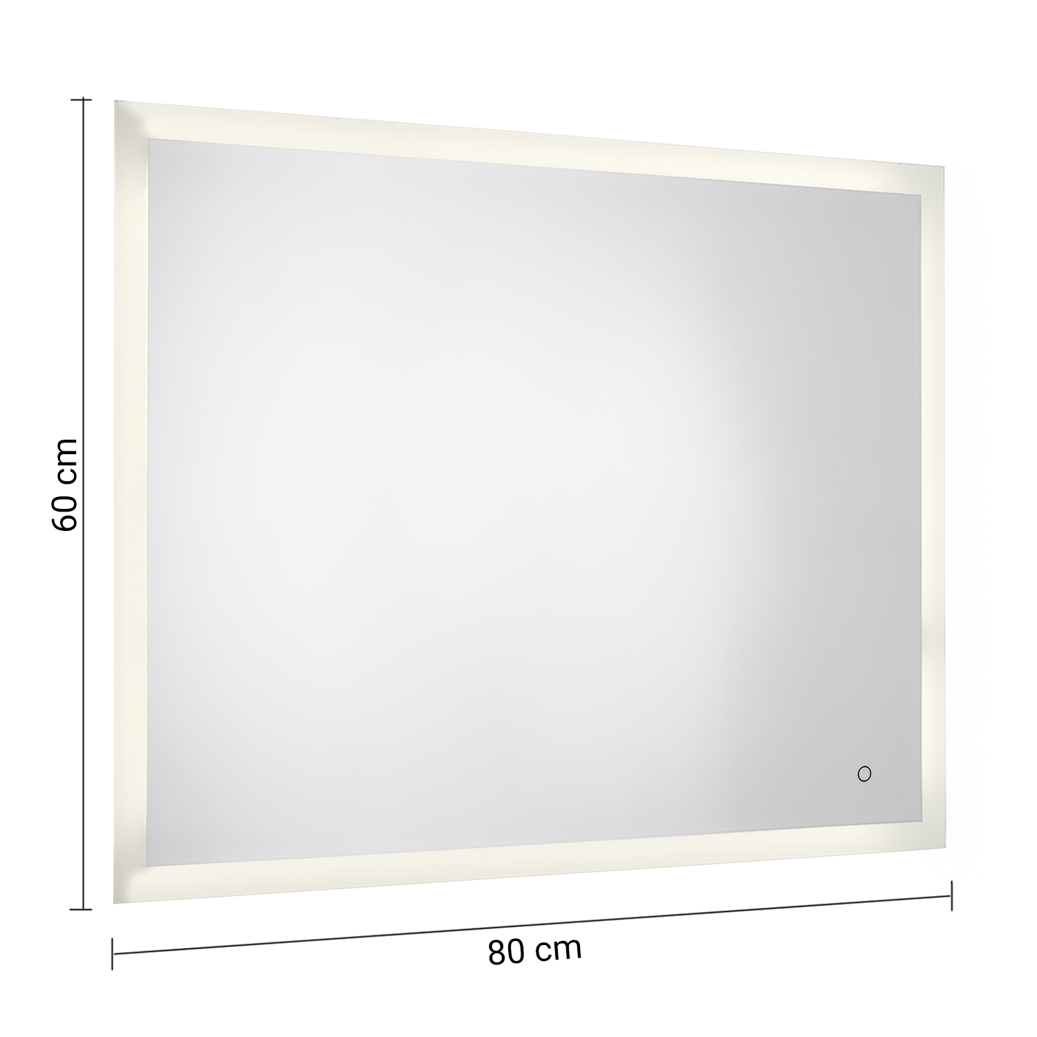 Specchio filo lucido con luci a led. plus prodotto: accensione touch screen e reversibile. i led sono ip44, ii classe, rohs, class exempt group en 62471, 22w – 4000°k – cri>91 – 220-240v – 50-60hz – 1250 lumen.