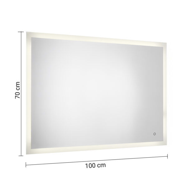 Specchio filo lucido con luci a led. plus prodotto: accensione touch screen e reversibile. i led sono ip44, ii classe, rohs, class exempt group en 62471, 27w – 4000°k – cri>90 – 220-240v – 50-60hz – 1540 lumen.
