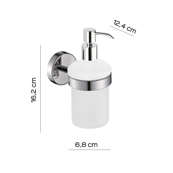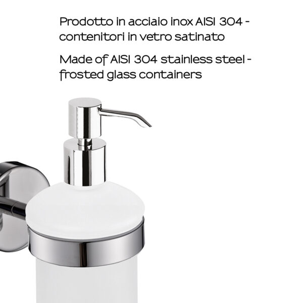 Dosasapone con contenitore in vetro satinato ed erogatore in acciaio inox aisi 304