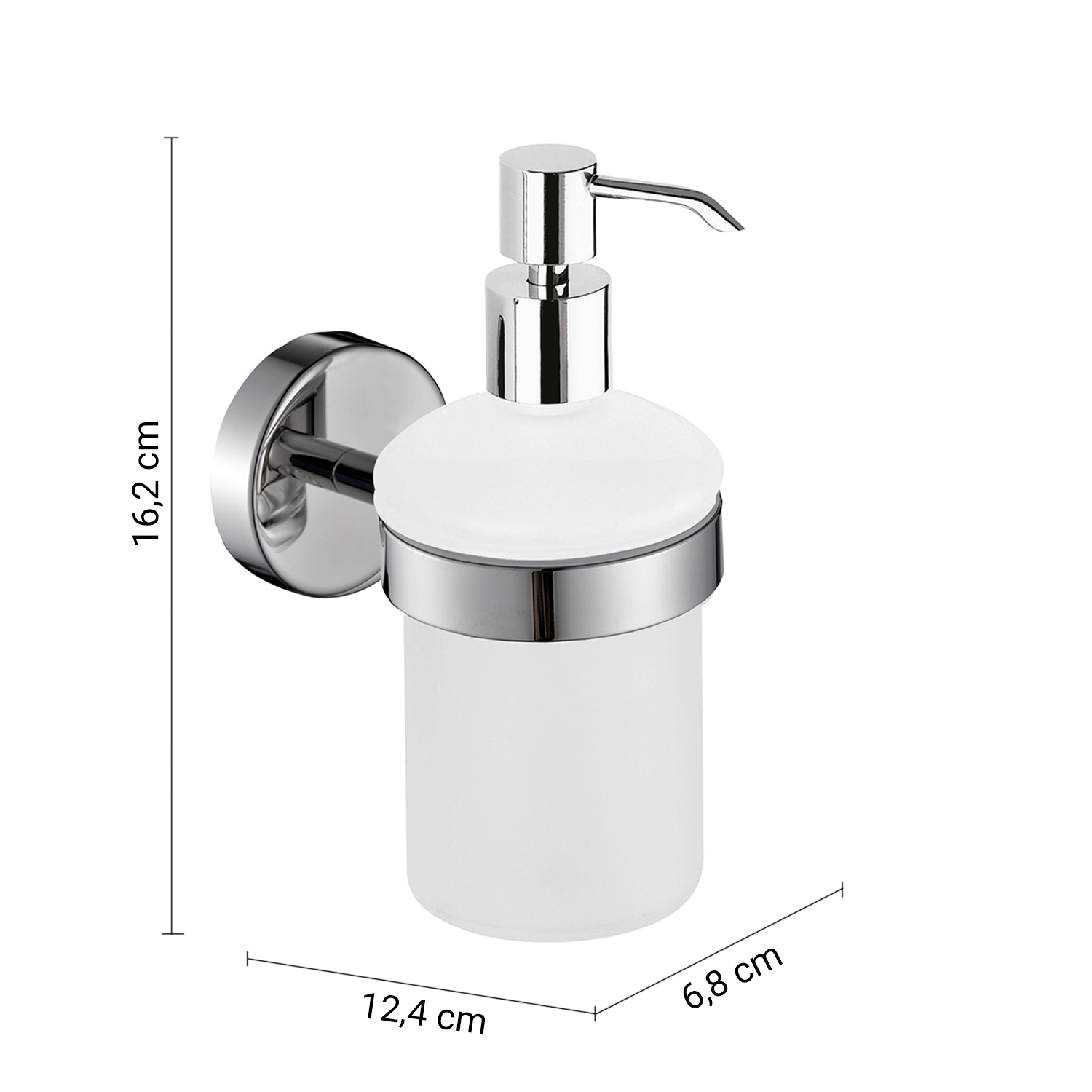 Dosasapone con contenitore in vetro satinato ed erogatore in acciaio inox aisi 304
