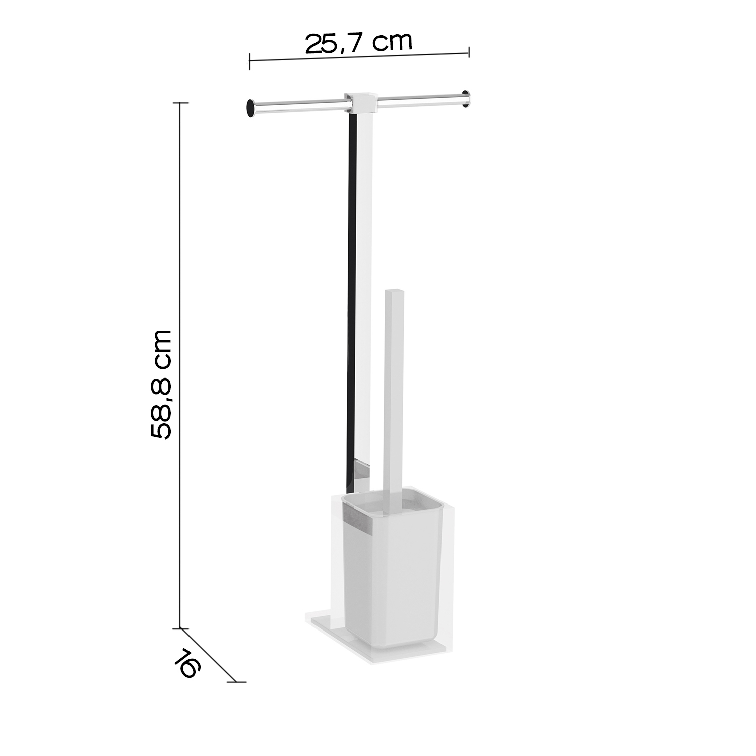 Piantana portasalviette con portarotolo e scopino wc colorato bianco. scopino con ciuffo in setole nero