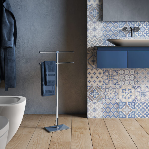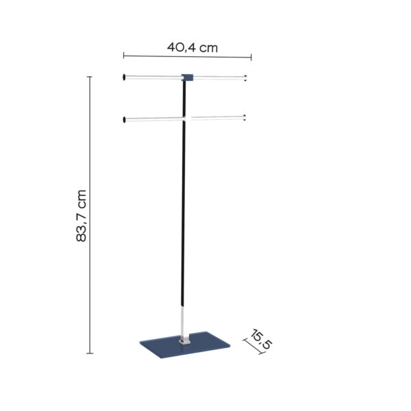 Piantana portasalviette con due braccia e con base colorata blu petrolio