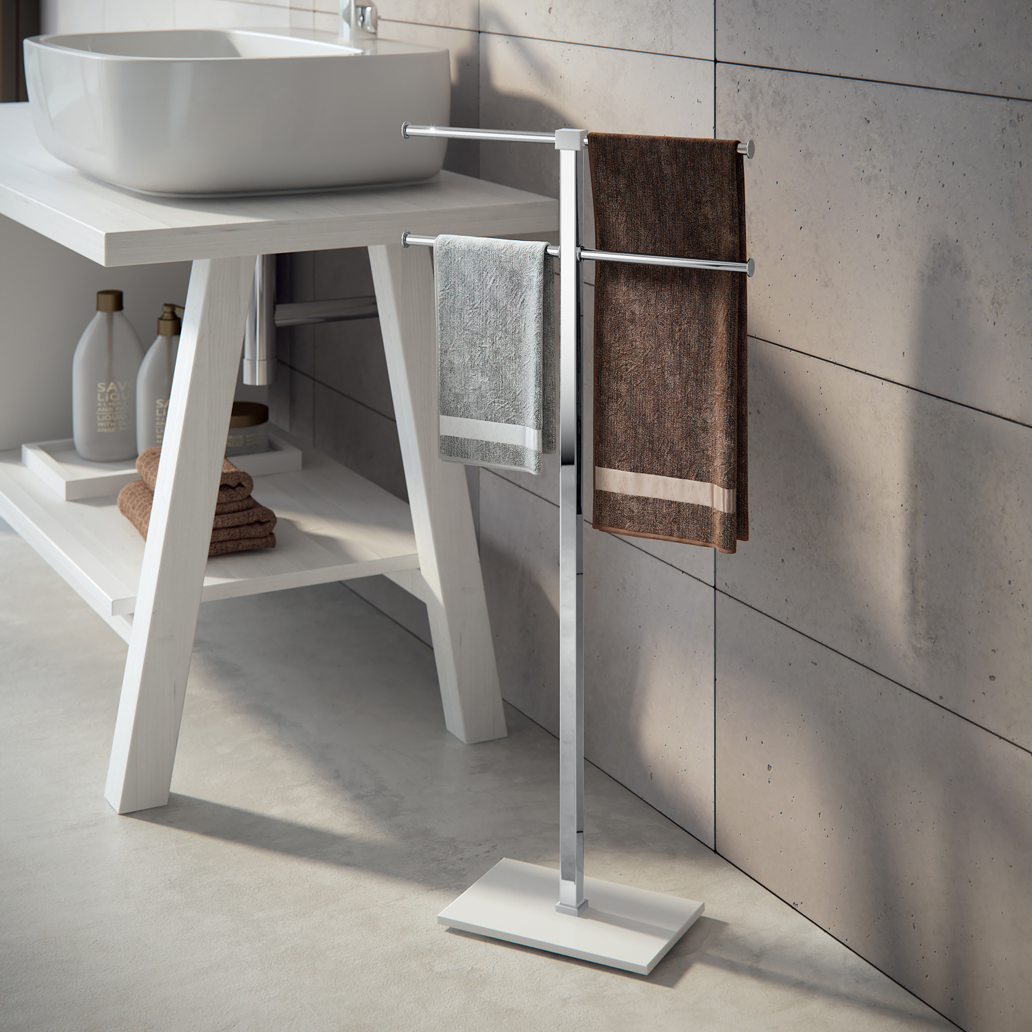 Piantana portasalviette con due braccia e con base colorata tortora chiara