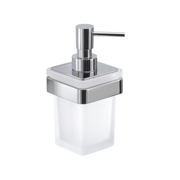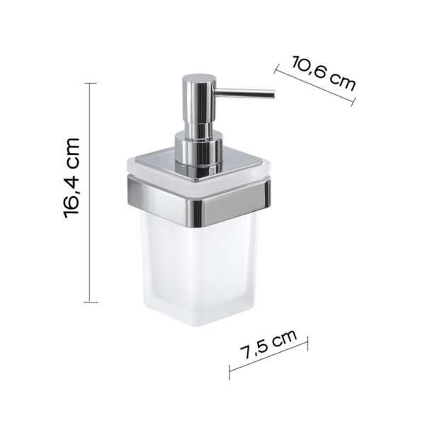 Dosasapone con contenitore in vetro satinato ed erogatore in cromall®