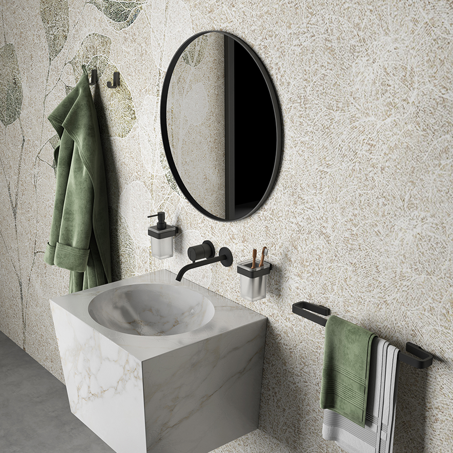 Portaspazzolini con contenitore in vetro satinato