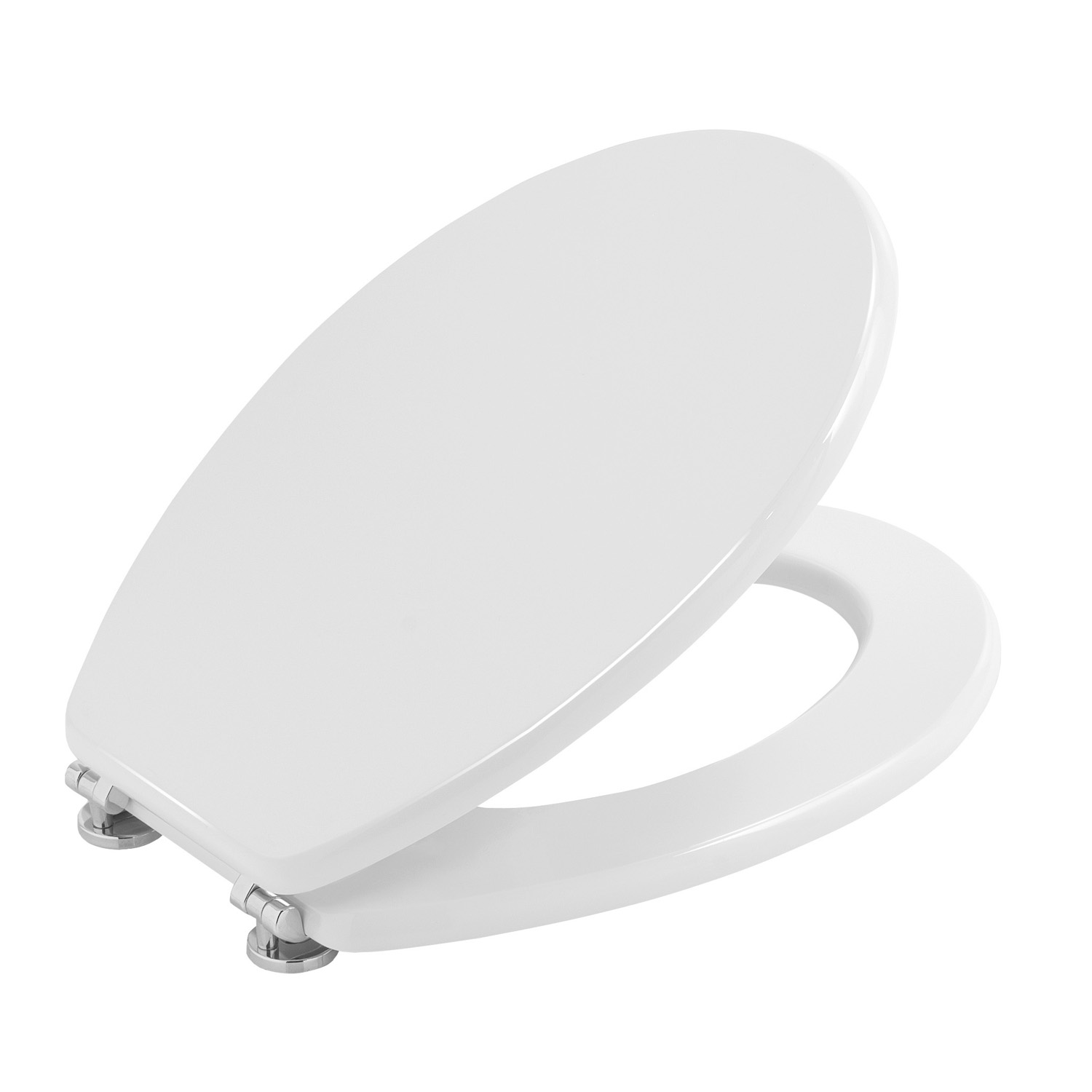 Sedile wc per sanitari modello ellisse, in mdf con laccatura epossidica e cerniere in ottone cromato. fissaggio a espansione dall’alto