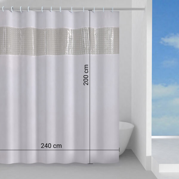 Tenda doccia in tessuto con anelli inclusi 240×200 cm con decoro trasparente in peva