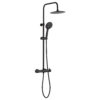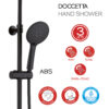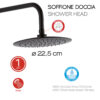 Colonna doccia estensibile 84-144 cm, miscelatore manuale, soffione 1 getto ø 22,5 cm, doccetta a 3 getti, flessibile 150 cm 1/2×1/2 con conico antitorsione. plus prodotto: presenza di microfori che crea un effetto nebuloso, attacco universale, filtro antisabbia e ha una riduzione di risparmio idrico del 50%. ugelli con sistema di pulizia facile. il flessibile è antitorsione, resistente alle piegature ed è resistente ad una temperatura di 90°