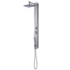 Pannello doccia in vetro temperato 130x11x48 cm, soffione 1 getto 20×20 cm, doccetta 1 getto, miscelatore manuale, deviatore acqua a 2 vie, flessibile acciaio inox cm 150 doppia aggraffatura 1/2×1/2 con conico antitorsione. plus prodotto: presenza di microfori che crea un effetto nebuloso, attacco universale, filtro antisabbia e ha una riduzione di risparmio idrico del 50%. ugelli con sistema di pulizia facile. il flessibile è antitorsione, resistente alle piegature ed è resistente ad una temperatura di 90°