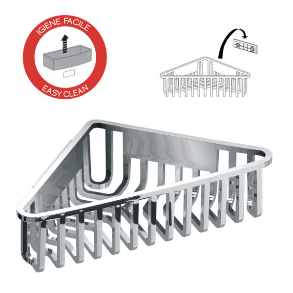 Portaoggetti angolare per doccia. plus prodotto: igiene facile