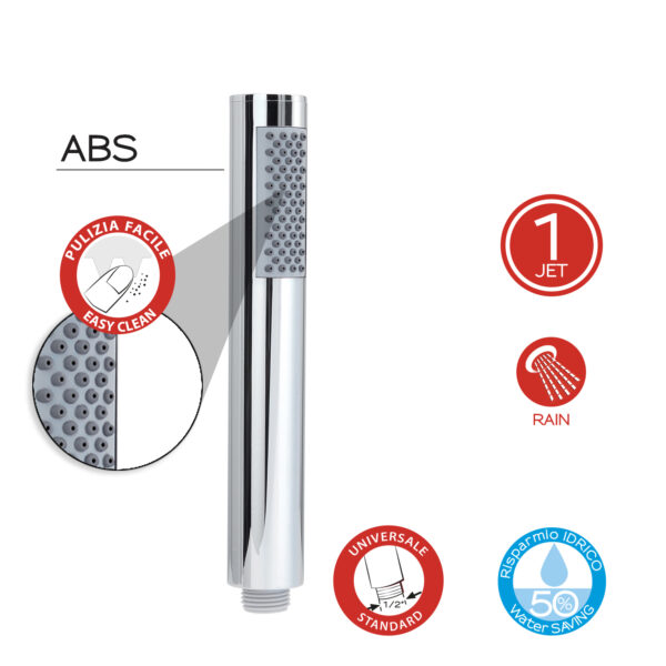 Doccetta a 1 getto con attacco universale, filtro risparmio acqua. ugelli con sistema di pulizia facile.