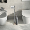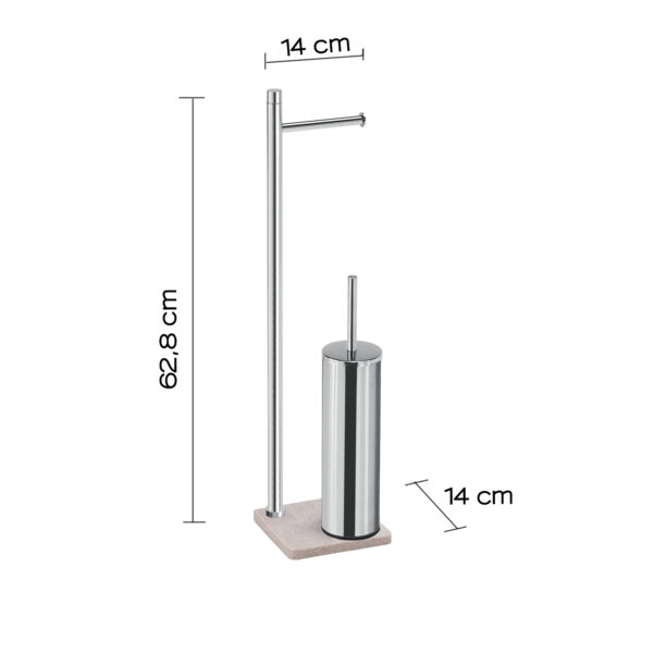 Piantana portasalviette con portarotolo e scopino wc, con base resina e sabbia. scopino con ciuffo in setole nero e tazza interna estraibile idonea ad una facile pulizia