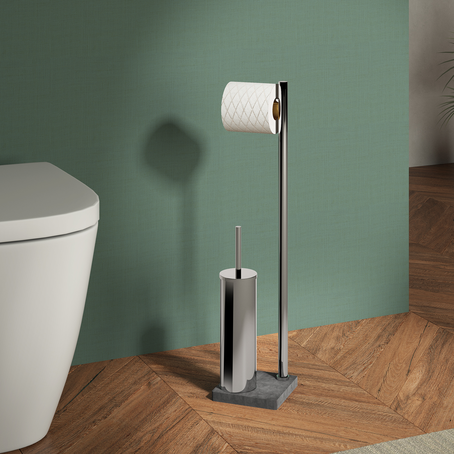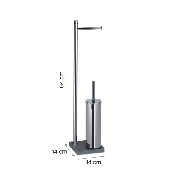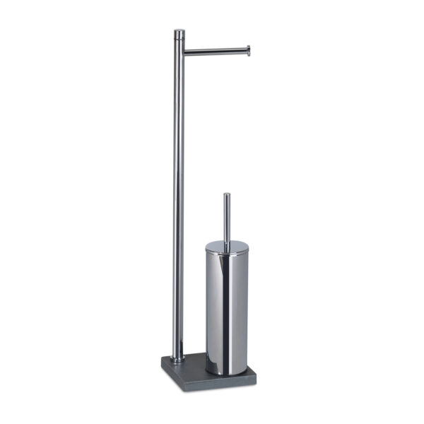 Piantana portasalviette con portarotolo e scopino wc, con base resina e sabbia. scopino con ciuffo in setole nero e tazza interna estraibile idonea ad una facile pulizia