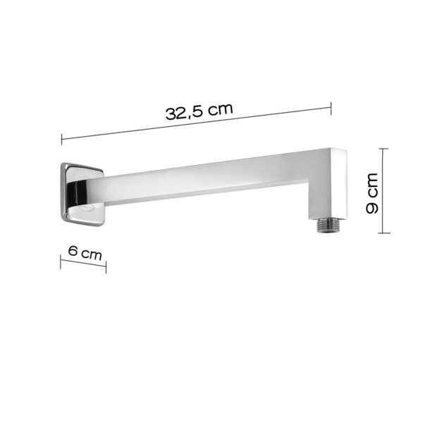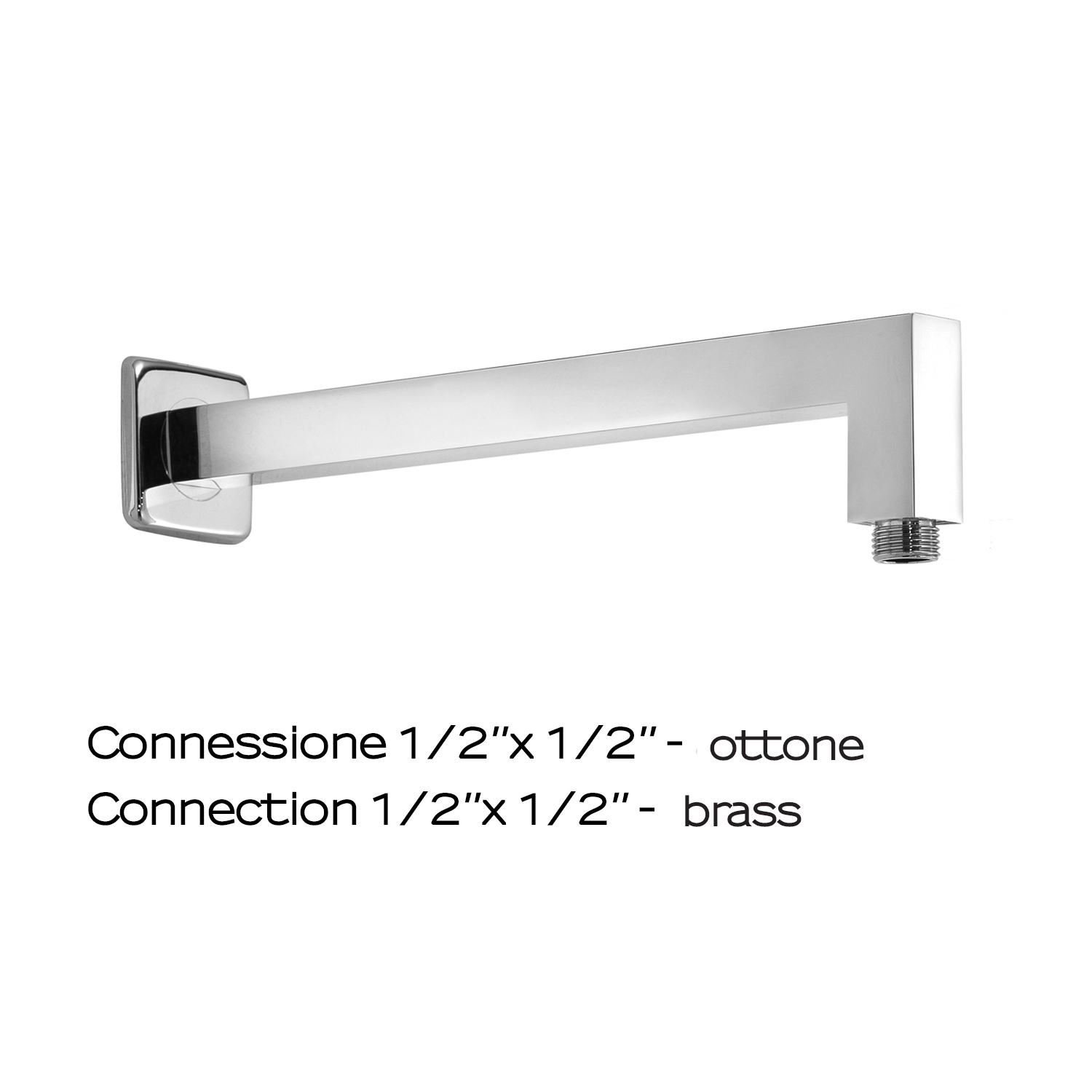 Braccio doccia con rosone 30×2,5×2,5 cm, connessione 1/2×1/2. attacco universale