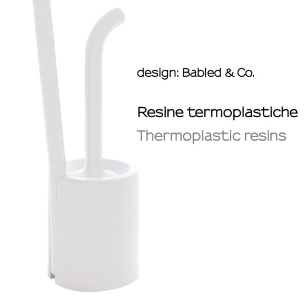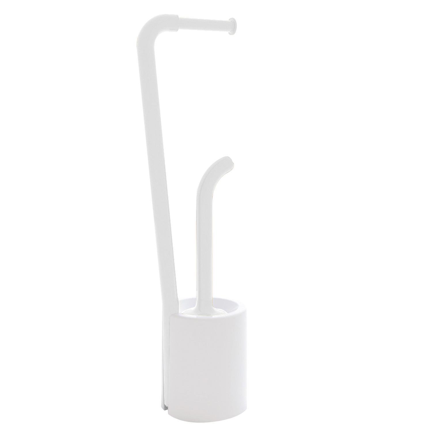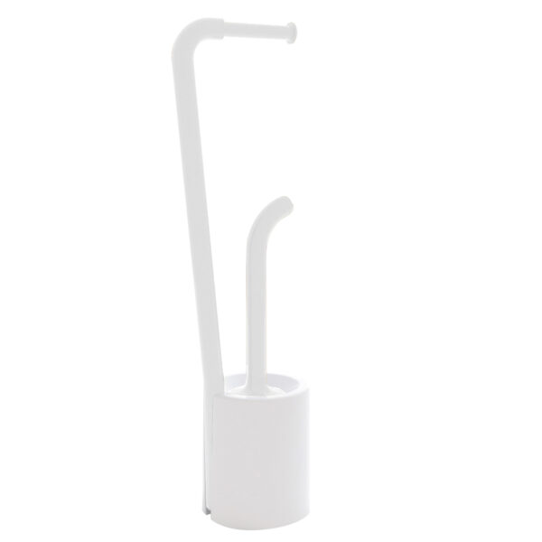 Piantana con portarotolo e scopino wc. scopino con ciuffo in setole nero e tazza interna estraibile idonea ad una facile pulizia